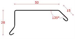 Forkant 28 mm og bagkant 15 mm, lige og udklinket 15 mm i beg. ender f. saml.,